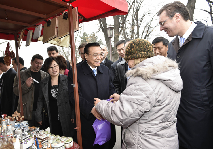 李克強走訪貝爾格萊德的集市。中新社 劉震 攝