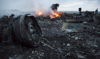 當地時間17日,馬來西亞一架波音777客機在靠近俄羅斯領空的烏克蘭境內墜毀。這架波音客機原定從阿姆斯特丹飛往馬來西亞吉隆坡。詳細