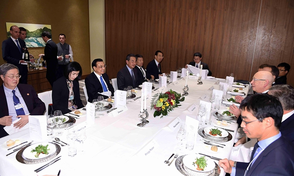 (施瓦布專門設宴招待克強總理。攝影:李濤)