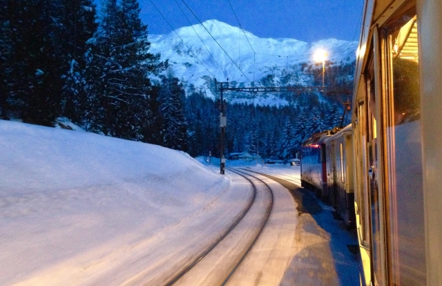 (專列在暮色中即將抵達(dá)達(dá)沃斯,窗外白雪皚皚,昏黃的燈光感覺很溫暖。攝影:王威)