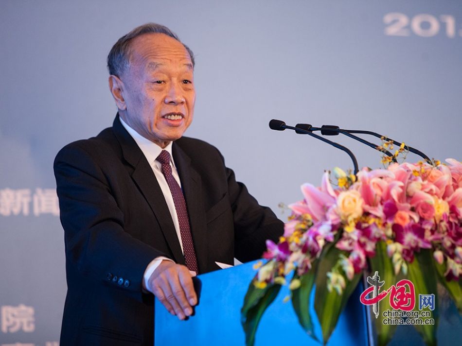 圖為中國公共外交協會會長、外交部原部長李肇星在“21世紀海上絲綢之路國際研討會”高峰論壇發表演講。中國網記者 鄭亮 攝