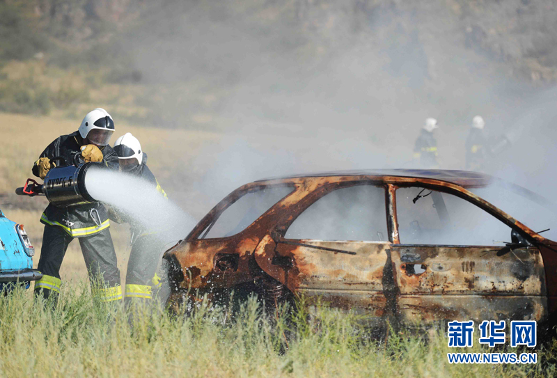 6月3日,代表中國參加上合組織國際救援聯(lián)合演練的新疆消防總隊(duì)隊(duì)員在哈薩克斯坦阿拉木圖州塔姆卡壘塔斯景區(qū)的哈內(nèi)務(wù)部緊急情況委員會(huì)教練基地“巖石城-阿斯塔納”參加演練。新華社記者沙達(dá)提攝