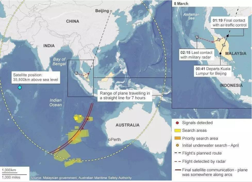 許多人還記得,MH370失去聯(lián)系后,根據(jù)飛機(jī)曾與衛(wèi)星聯(lián)系的信號(hào)在印度洋東部劃出了一個(gè)12萬(wàn)平方公里的搜尋區(qū),那為什么現(xiàn)在殘骸又出現(xiàn)在了數(shù)千公里外、印度洋西南部的留尼汪島?