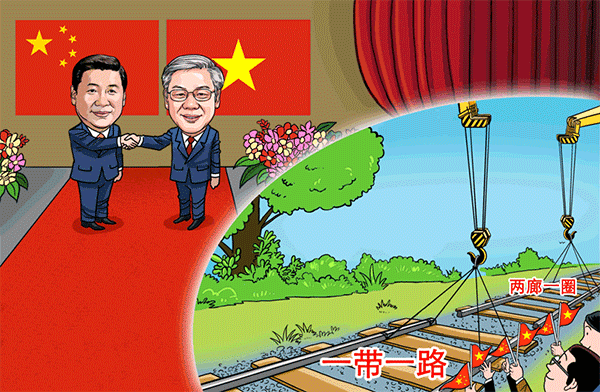 中越是山水相連的友好鄰邦,兩國政治制度相同、發(fā)展道路相近、前途命運(yùn)相關(guān)。建交65年來,中越雙邊關(guān)系正朝著建設(shè)中越命運(yùn)共同體的方向不斷前進(jìn)。習(xí)近平此訪,將增進(jìn)互信,凝聚共識(shí),發(fā)揚(yáng)中越“好鄰居、好朋友、好同志、好伙伴”特殊情誼,推動(dòng)中越關(guān)系沿著正確道路繼續(xù)發(fā)展,擴(kuò)大“一帶一路”和“兩廊一圈”框架內(nèi)務(wù)實(shí)合作,推進(jìn)中越全面戰(zhàn)略合作伙伴關(guān)系邁上新臺(tái)階。(作者系中國社會(huì)科學(xué)院世界經(jīng)濟(jì)與政治研究所國際政治經(jīng)濟(jì)學(xué)研究室副主任徐秀軍 漫畫作者蔡艨)