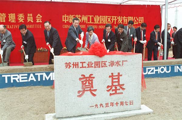 為了加快蘇州工業(yè)園區(qū)的建設,中新兩國政府聯(lián)合協(xié)調理事會第二次會議1995年10月7日在江蘇蘇州舉行。新加坡副總理李顯龍、中國副總理李嵐清主持了這次會議。圖為1995年10月7日會議代表參加蘇州凈水廠的奠基儀式,左三為李嵐清,左四為李顯龍。