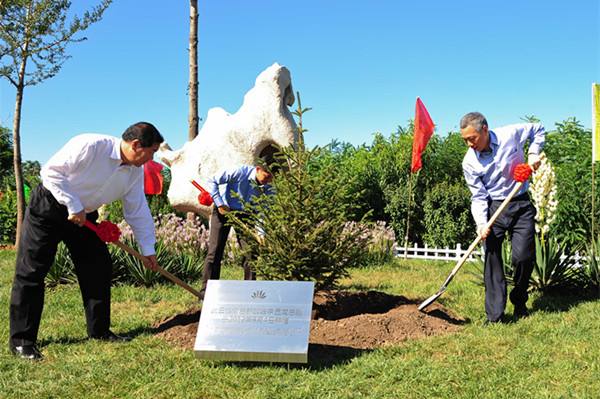 2012年9月4日,新加坡總理李顯龍(右一)在中新天津生態(tài)城永定洲文化主題公園與中方共同植下一株象征合作與友誼的云杉樹。 當日,正在對中國進行正式訪問的新加坡總理李顯龍來到天津參觀訪問。 新華社記者張超群攝