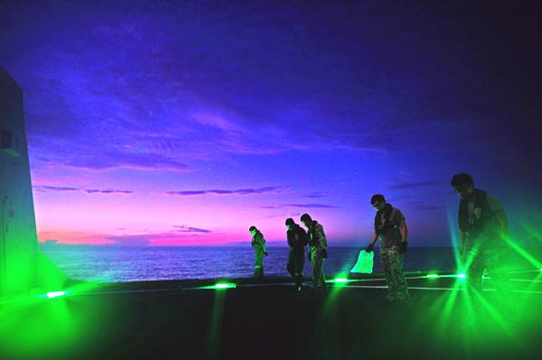 圖為 2015年5月25日,新加坡海軍“剛毅”號護衛(wèi)艦士兵進行直升機起降準備工作。當日,中國海軍“玉林”號導彈護衛(wèi)艦與新加坡海軍“剛毅”號護衛(wèi)艦、“奮勇”號導彈巡邏艦在馬來半島以東海域順利完成了代號為“中新合作-2015”的海上雙邊軍事演習。這是中新兩國首次進行的雙邊海上軍事演習。