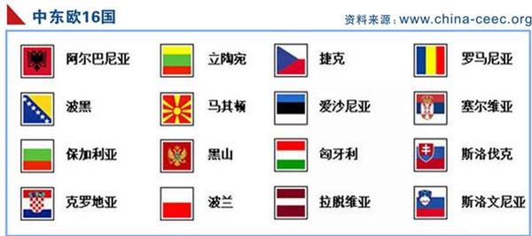 包括:波蘭、捷克、斯洛伐克、匈牙利、斯洛文尼亞、克羅地亞、波黑、塞爾維亞、黑山、羅馬尼亞、保加利亞、阿爾巴尼亞、馬其頓、愛沙尼亞、立陶宛和拉脫維亞。