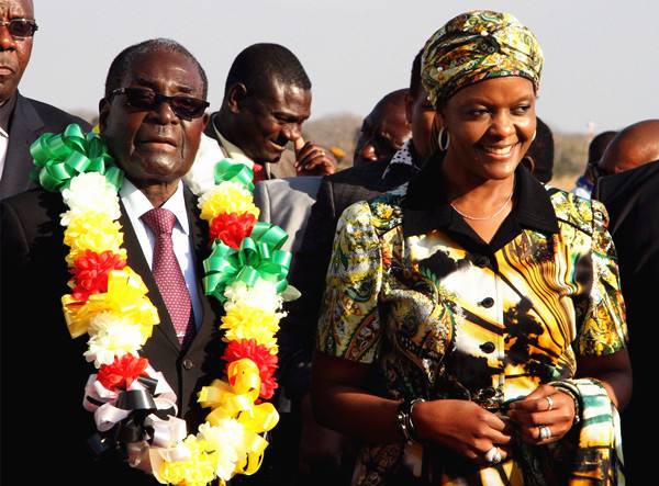 2014年12月6日,總統穆加貝和第一夫人格蕾絲在首都哈拉雷出席執政黨民盟會議。(新華社/路透)