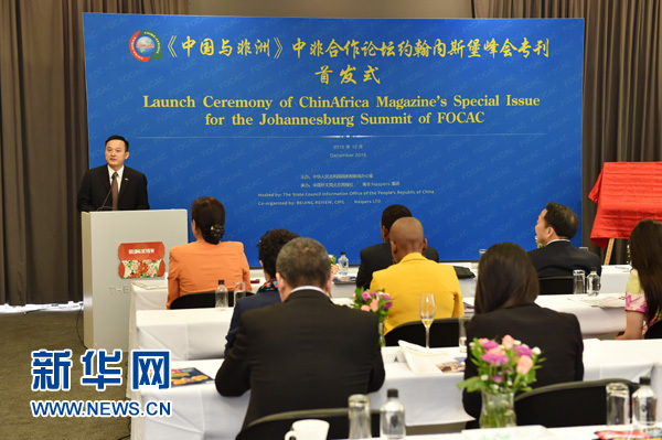 12月3日在南非約翰內斯堡拍攝的《中國與非洲》雜志約翰內斯堡峰會??装l式現場。新華社記者 孫瑞博攝