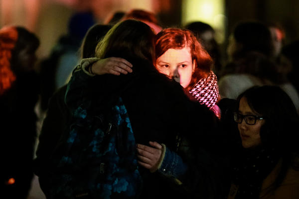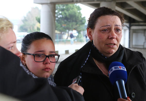 3月22日,在比利時(shí)首都布魯塞爾,兩名現(xiàn)場(chǎng)目擊者在接受采訪(fǎng)時(shí)潸然淚下。新華社記者龔兵攝
