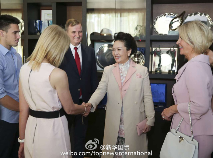 ??? 新華網北京6月18日電 18日中午,彭麗媛在塞爾維亞總統夫人德拉吉察陪同下,參觀了德約科維奇網球培訓中心,并同塞爾維亞著名網球運動員德約科維奇的母親、叔父和弟弟親切會面。彭麗媛對德約科維奇家人說:“小德在中國擁有很多粉絲?!迸睇愭路Q贊德約科維奇不僅球技精湛而且充滿愛國情懷。彭麗媛還向網球培訓中心贈送德約科維奇自傳《一發制勝》的中文版。?(新華社新華國際微博報道)