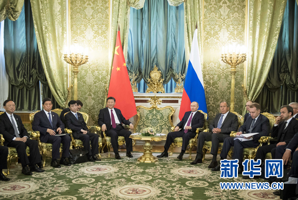 習近平指出,中俄兩國是山水相連的好鄰居、守望相助的好朋友、精誠協作的好伙伴。中俄全面戰略協作伙伴關系符合兩國和兩國人民根本利益,具有強大生命力和巨大發展潛力,經得起國際風云變幻考驗。中俄關系持續健康穩定發展,有利于維護兩國安全穩定,有利于中俄各自發展振興,也有利于世界和平、穩定、繁榮。
