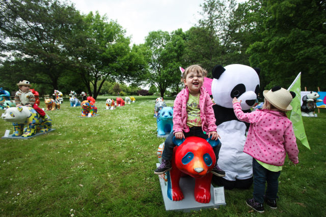德國(guó)柏林世界公園展出中國(guó)大熊貓雕塑作品的資料照片。(新華社記者張帆攝)