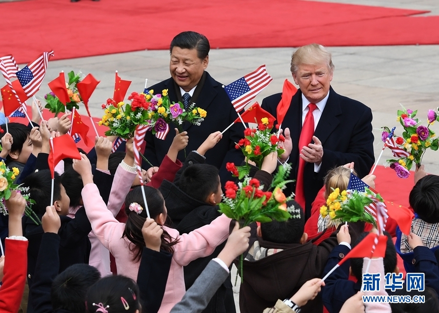 11月9日,國家主席習近平在北京人民大會堂東門外廣場舉行歡迎儀式,歡迎美利堅合眾國總統(tǒng)唐納德·特朗普對中國進行國事訪問。 新華社記者饒愛民攝