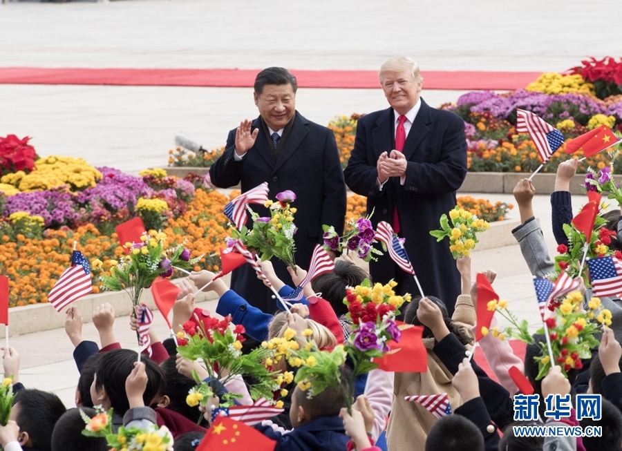 11月9日,國家主席習近平在北京人民大會堂東門外廣場舉行歡迎儀式,歡迎美利堅合眾國總統(tǒng)唐納德·特朗普對中國進行國事訪問。 新華社記者李學仁 攝