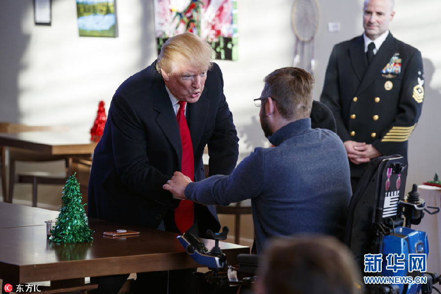 當(dāng)?shù)貢r間21日,美國馬里蘭州,美國總統(tǒng)特朗普訪問沃爾特-里德國家軍事醫(yī)療中心,慰問受傷士兵和家屬,并與退伍的海軍陸戰(zhàn)隊(duì)中士John Peck交談。