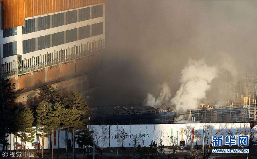 韓國水原市建筑工地發(fā)生火災(zāi) 現(xiàn)場濃煙滾滾