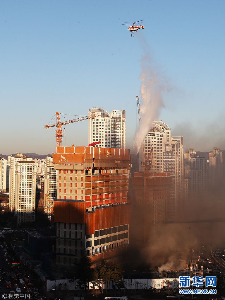 韓國水原市建筑工地發(fā)生火災(zāi) 現(xiàn)場(chǎng)濃煙滾滾