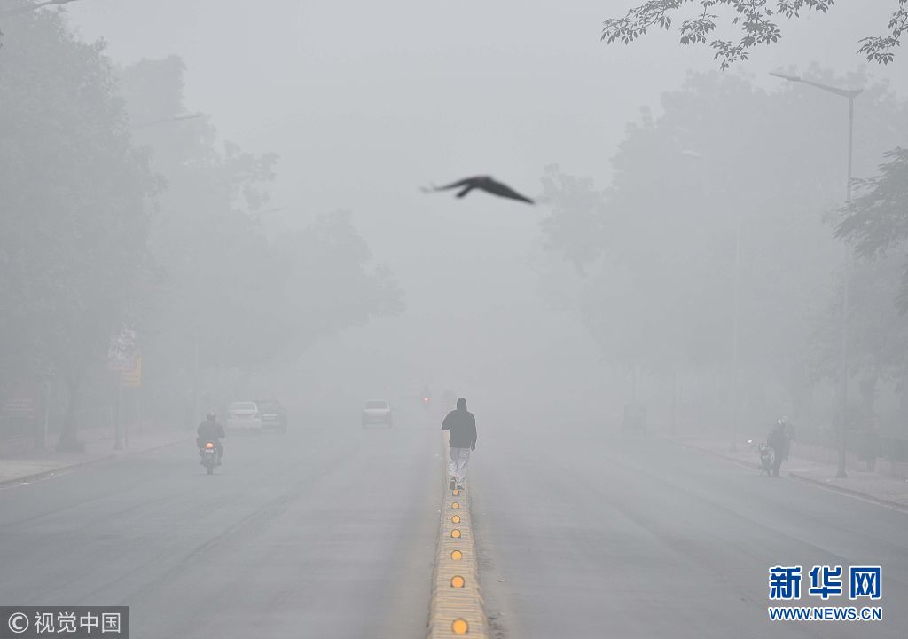 當地時間1月2日,印度新德里遭遇冷空氣及強霧霾天氣,能見度低。 (圖片來源:視覺中國)