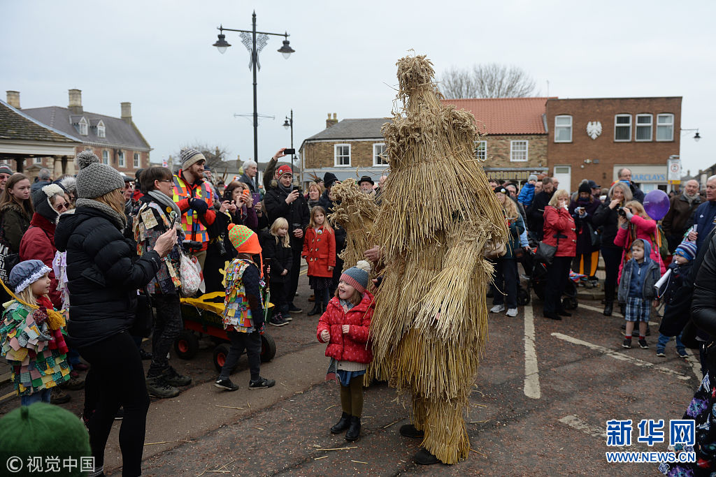 英國小鎮慶祝“稻草熊”節 民眾跟隨草人盡情舞動