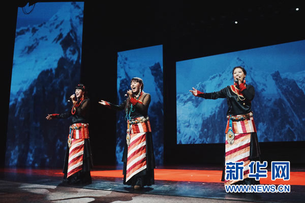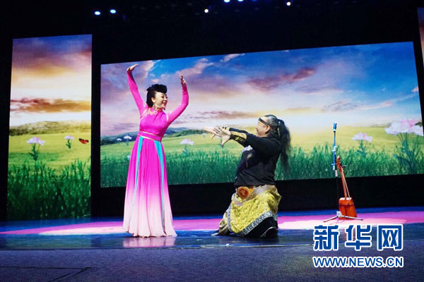 今年6歲的小朋友程錦龍被口技手影戲《動物世界》深深吸引,隨著口技表演家許國立在現場不斷變換動物,他跟著認起了每個動物,大呼好玩;胡琴演奏家季節無伴奏演奏《二泉映月》,意境深遠、樂音悠長,現場觀眾不自覺跟著哼唱起來;青年女高音歌唱家周旋聲情并茂演唱完《絨花》,臺下觀眾為她送上鮮花表達喜愛之情;嗩吶演奏家侯彥秋的激情吹奏及雜技演員王建磊的花樣空竹,都讓現場觀眾如癡如醉;在藏族歌唱組合雪蓮三姐妹歌聲的配合下,藝術團代表為現場貴賓和觀眾敬獻哈達;特別是來自中國雜技團的雜技演員表演《靈動》《球技》《協奏黑白狂想》等緊張刺激的雜技時,引來陣陣驚嘆。