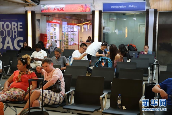 2月7日,在馬爾代夫馬累國際機(jī)場(chǎng),旅客坐在椅子上休息。新華社記者 朱瑞卿 攝