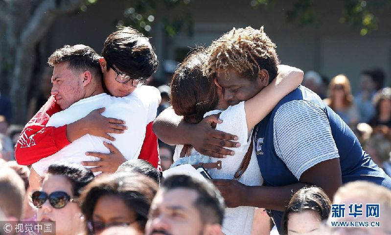 當地時間2018年2月15日,美國佛羅里達州科勒爾斯普林斯,民眾悼念槍擊案遇難者。當地時間14日下午2點25分左右,美國佛羅里達州南部帕克蘭一所高中發生槍擊案,目前已致至少17人死亡,多人受傷。(圖片來源:視覺中國)