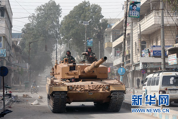 3月24日,在敘利亞阿夫林,一輛土耳其坦克在城區駛過。新華社發