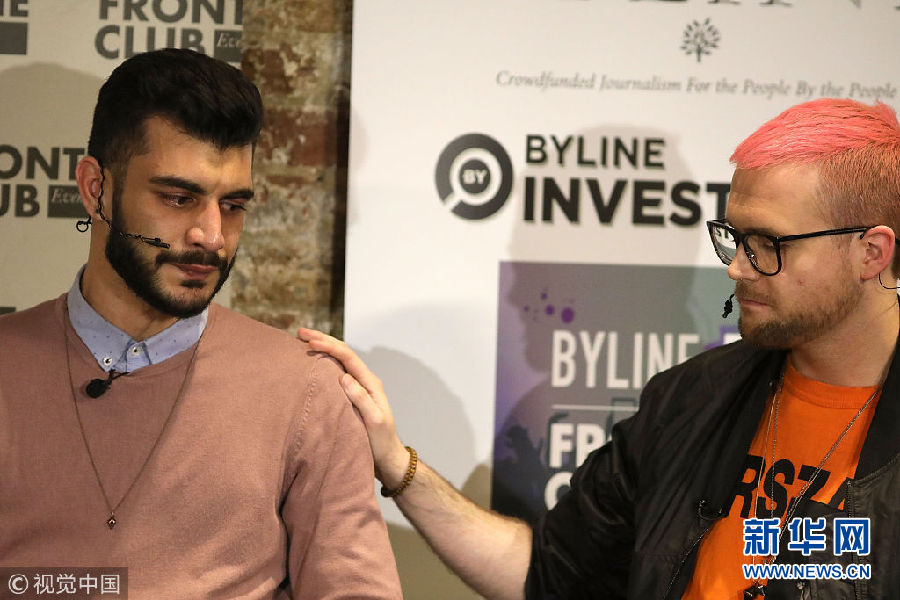 當地時間2018年3月26日,英國倫敦,被指泄露并利用了5000萬臉書用戶數據的政治數據公司“劍橋分析”近日被多位爆料人指出,該公司也參與了支持英國脫歐的活動。一位為英國脫歐組織“投給脫歐”工作過的爆料人Shahmir Sanni和“劍橋分析”前員工Christopher Wylie出席活動。(圖片來源:視覺中國)