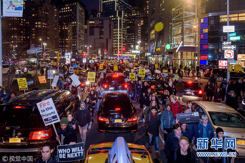 美國紐約舉行百人大游行 抗議加州警方槍殺手無寸鐵黑人男子