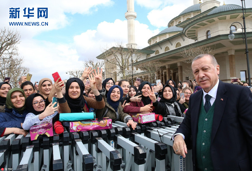 當地時間3月30日,土耳其安卡拉,土耳其總統埃爾多安在星期五禮拜結束后與民眾打招呼。(圖片來源:東方IC)
