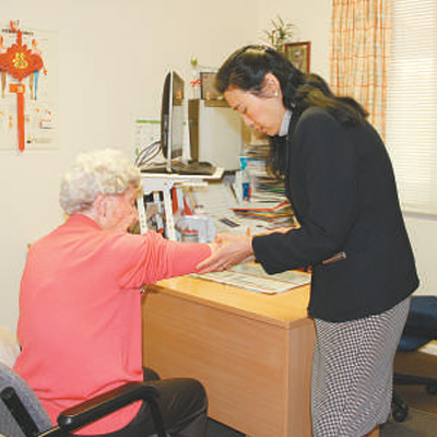 澳大利亞華裔醫(yī)生劉英在為患者檢查身體。記者 李鋒 攝
