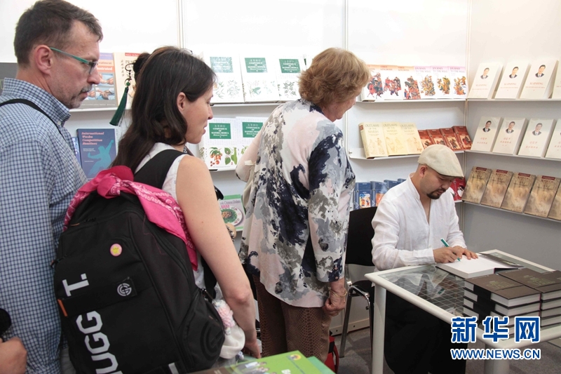 當地讀者排隊請戎新宇在其著作上簽名留念。新華網發