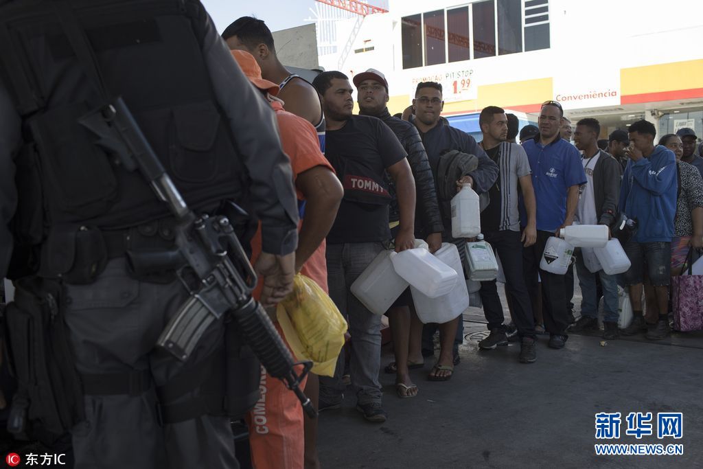 5月28日,巴西里約,巴西全國卡車司機罷工持續長達一周,導致燃料和食品短缺,民眾排隊購買汽油。(圖片來源:東方IC)