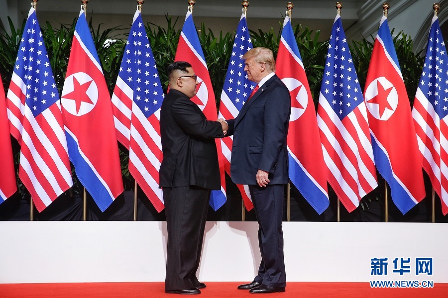 長期敵對的朝美兩國當天舉行首次領導人會晤,就朝鮮半島無核化及和平機制構建等事務展開磋商。