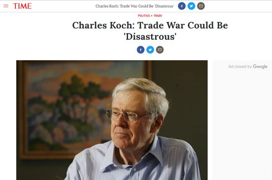 可隨著之后特朗普對中國等國發動貿易戰的行為,以及相關惡果的逐漸顯現,科赫家族的最新表態也與今年1月的言論形成了鮮明的對比。