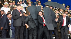 8月4日,在委內瑞拉首都加拉加斯,安全人員保護總統馬杜羅。新華社發