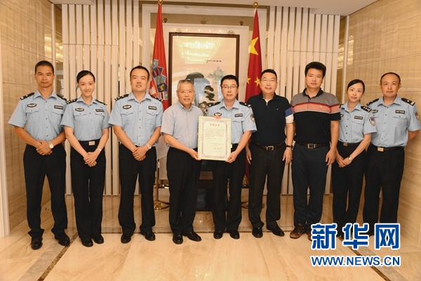 8月14日,中國駐克羅地亞大使胡兆明(左四)在薩格勒布為圓滿完成首次中克警務(wù)聯(lián)巡的中國警察頒發(fā)表彰證書。6名中國警察15日從克羅地亞首都薩格勒布啟程回國,為期一個月的中國與克羅地亞首次旅游季警務(wù)聯(lián)合巡邏圓滿結(jié)束。新華網(wǎng)發(fā) 高磊攝