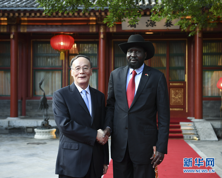 8月31日,國(guó)家副主席王岐山在北京釣魚臺(tái)國(guó)賓館會(huì)見來華出席中非合作論壇北京峰會(huì)的南蘇丹總統(tǒng)基爾。新華社記者 高潔 攝