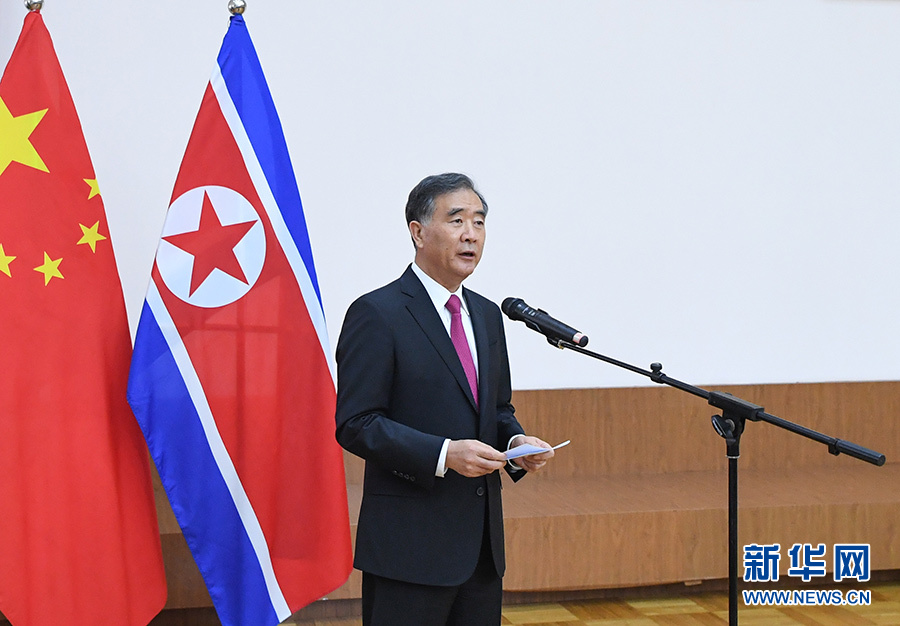 9月6日,中共中央政治局常委、全國(guó)政協(xié)主席汪洋在北京出席朝鮮駐華使館國(guó)慶70周年招待會(huì)并致辭。 新華社記者 申宏 攝