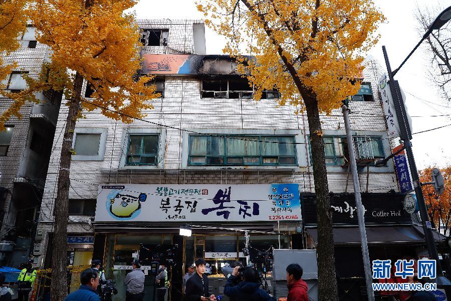 這是11月9日在韓國(guó)首爾拍攝的發(fā)生火災(zāi)的建筑。 新華社記者王婧嬙攝