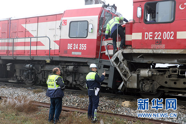 這是11月26日在土耳其錫瓦斯省拍攝的火車相撞事故現(xiàn)場(chǎng)。 新華社發(fā)