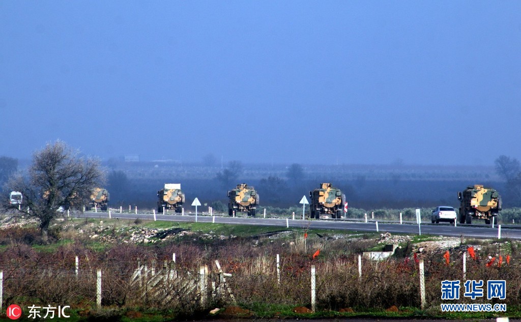 當(dāng)?shù)貢r間2018年12月24日,土耳其哈塔伊,土耳其裝甲車被派往敘利亞邊境的基利斯地區(qū),增援邊境部隊。(圖片來源:東方IC)