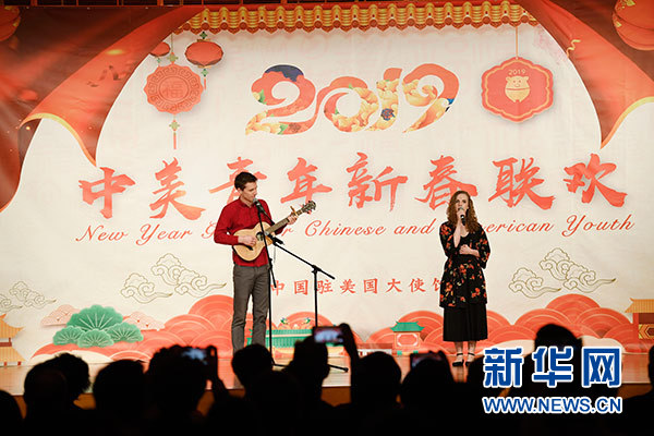 2月16日,在美國首都華盛頓,演員在中美青年新春聯(lián)歡活動(dòng)上演唱歌曲《因?yàn)閻矍椤贰?新華社記者 劉杰 攝