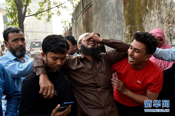 2月21日,在孟加拉國首都達卡,火災遇難者的家屬在醫院內慟哭。新華社發