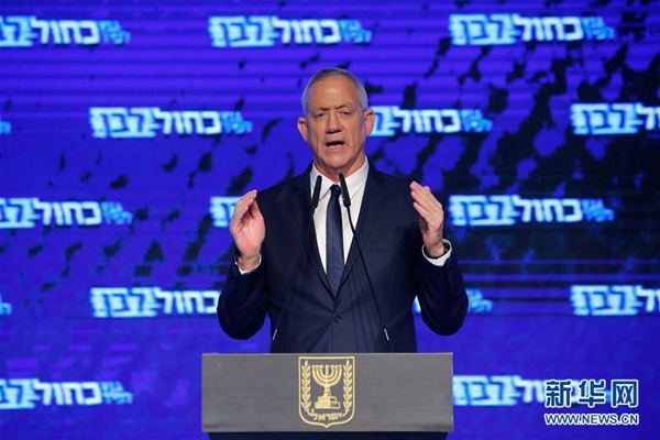 以色列藍白黨領導人甘茨4月10日晚發表講話,承認在議會選舉中失敗。這是4月9日,在以色列特拉維夫,以色列藍白黨領導人甘茨對支持者講話。新華社發(吉爾·科恩·馬根 攝)