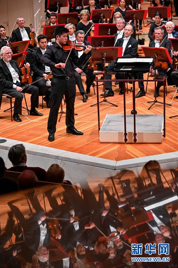 4月13日,朱熙萌在德國(guó)柏林交響樂團(tuán)“明日之星”演奏會(huì)上演奏。 新華社記者 連振 攝