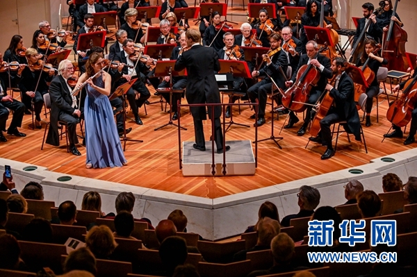 4月13日,尼娜·布赫霍爾策在德國(guó)柏林交響樂團(tuán)“明日之星”演奏會(huì)上演奏。 新華社記者 連振 攝