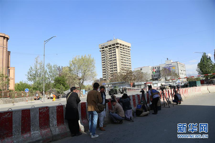4月20日,在阿富汗首都喀布爾,記者聚集在襲擊現場。新華社發(拉赫馬特·阿里扎達 攝)